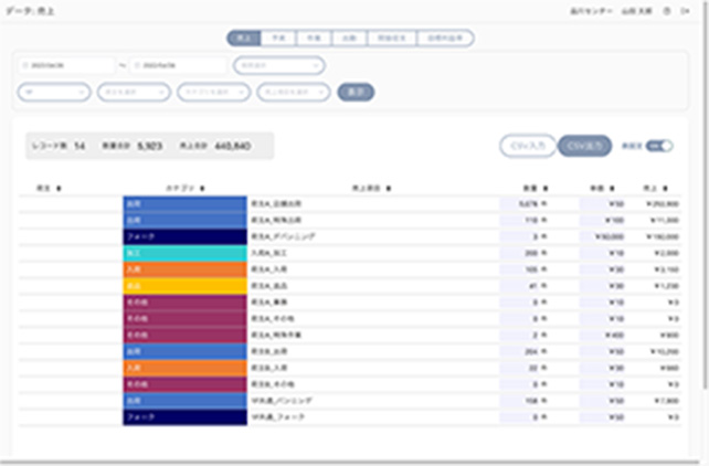 管理者はPC画面にて作業数量や売上数量などの登録を行います。