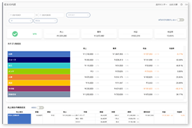 生産性・収支実績はもちろん、作業者の1日の動きを可視化したグラフや、設定単価のシミュレーション機能など、様々な視点で現状分析を行えます。